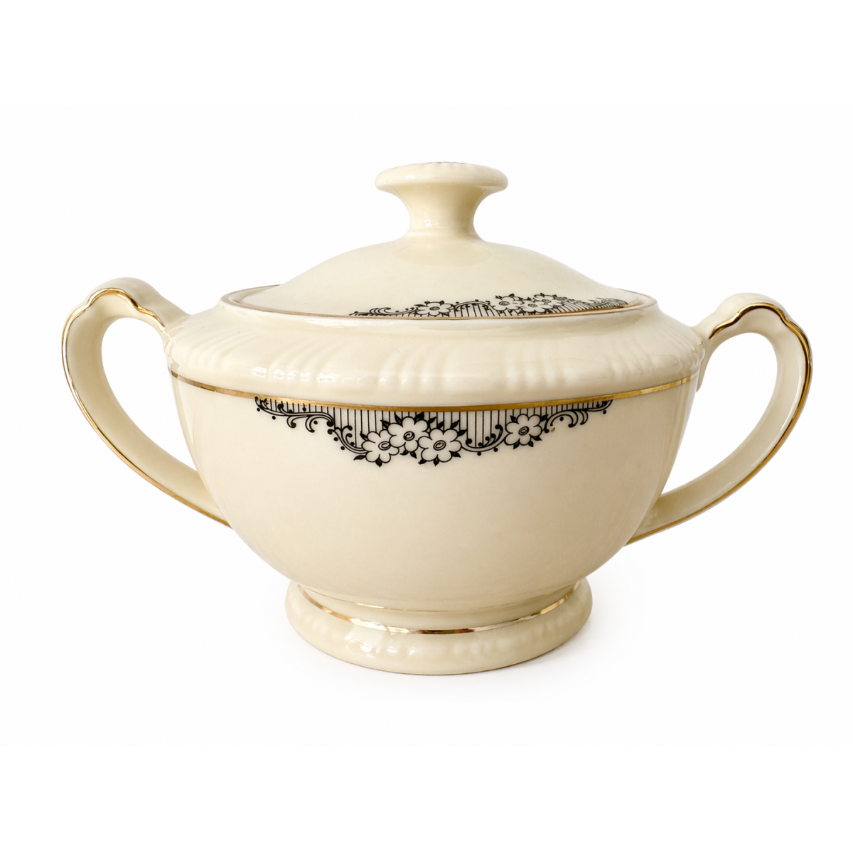 Apportez une touche de raffinement à votre intérieur avec cette bougie artisanale coulée dans un superbe sucrier au style classique. Ses courbes élégantes, ses délicats motifs floraux noirs et ses finitions dorées en font une pièce unique, à la fois décorative et chaleureuse.